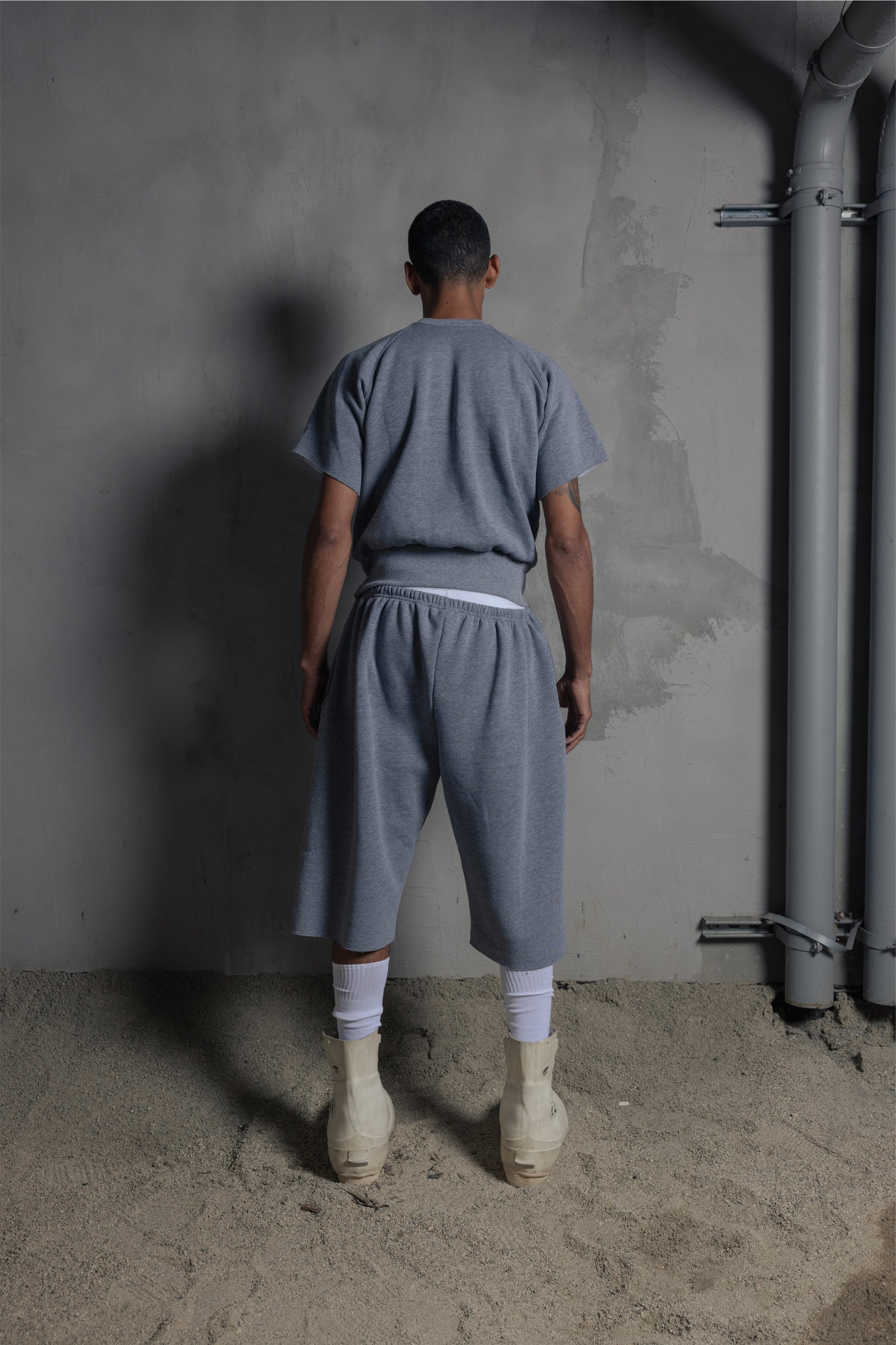 Our unisex oversized shorts with a raw edge leg